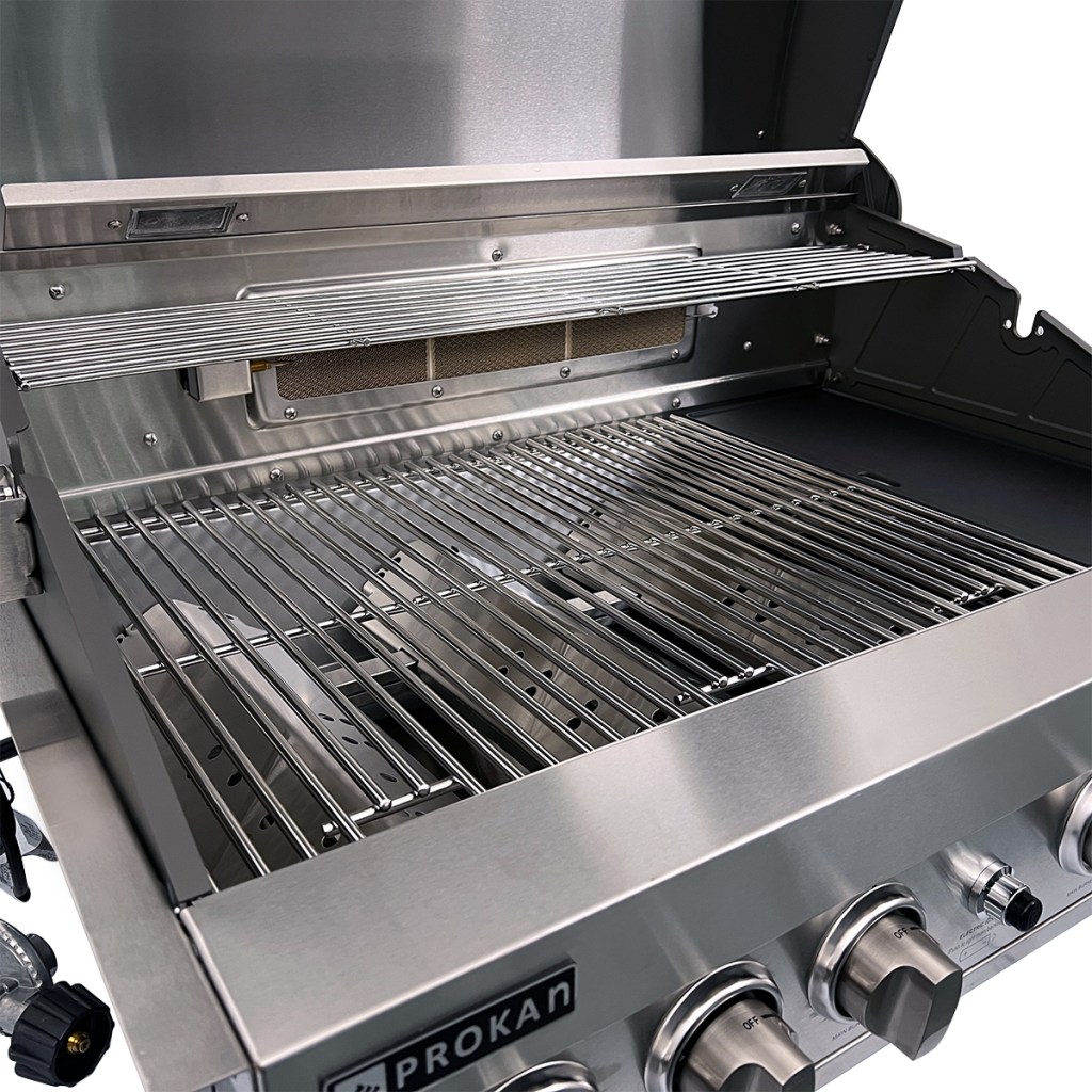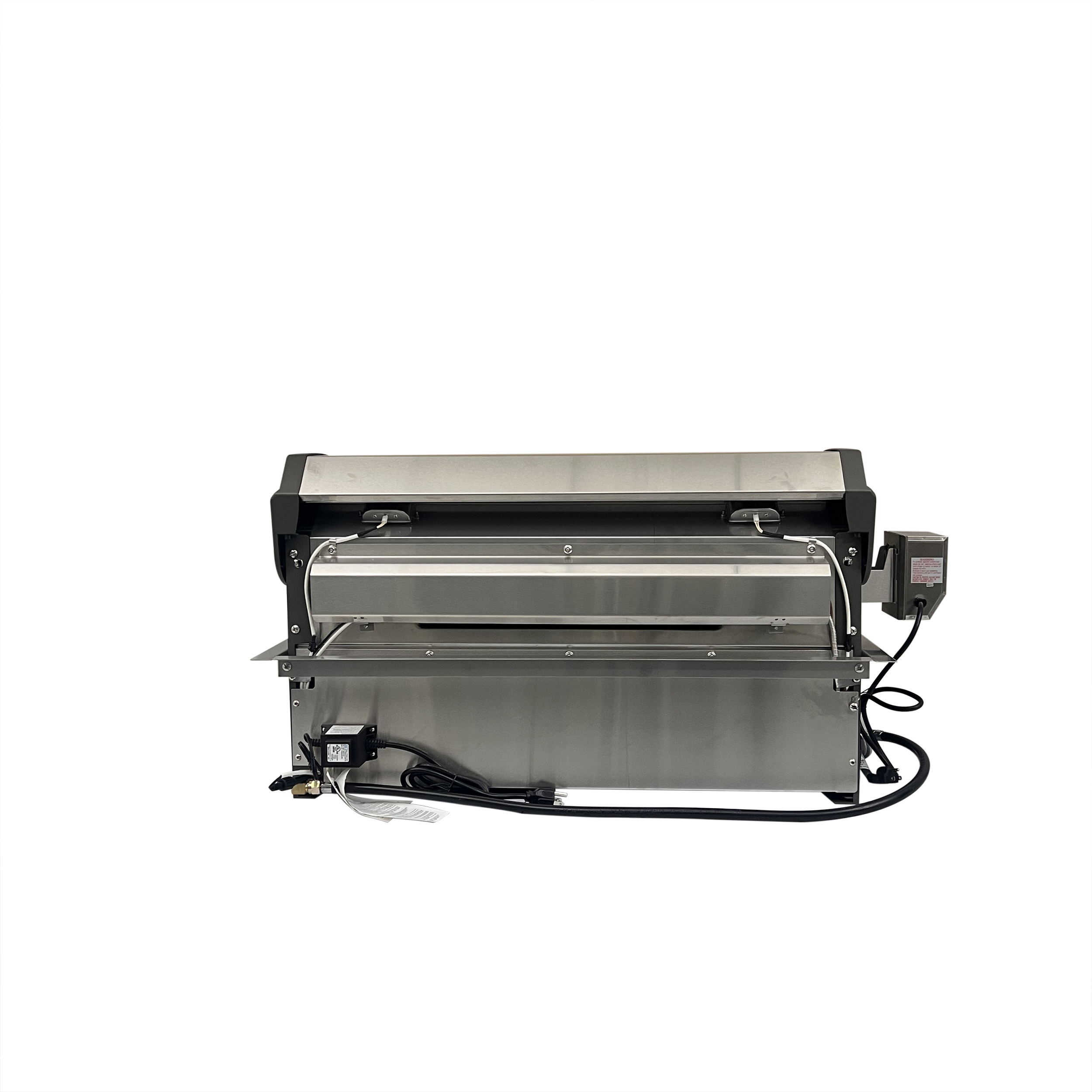 ● 12,000BTU (NG: 12,000BTU) rear infrared burner and SS304 rotisserie kit for roasting.