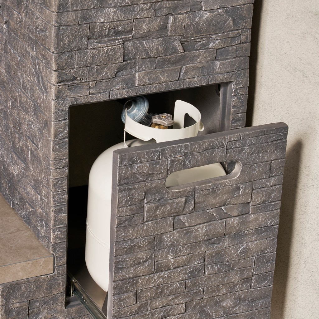 ● Conveniently exchange your 20lb propane tank (not included) with ease using the built-in pull-out tank tray.