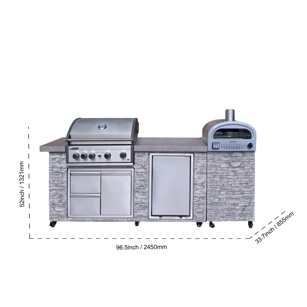 .A high-performance grill, 63L fridge, and an outdoor oven w/ digital temp controller on a single island for ultimate convenience.