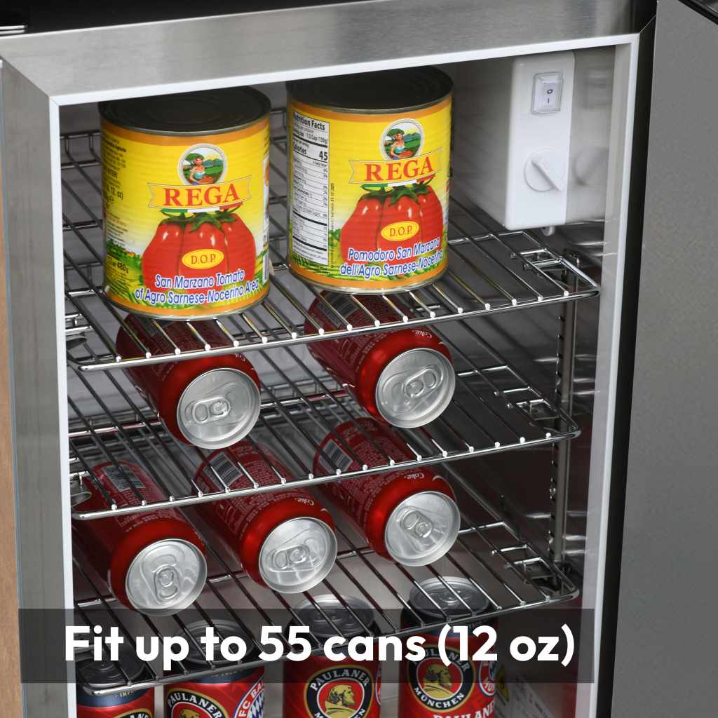 ● Fridge capacity: Hold up to 55 cans (12oz)