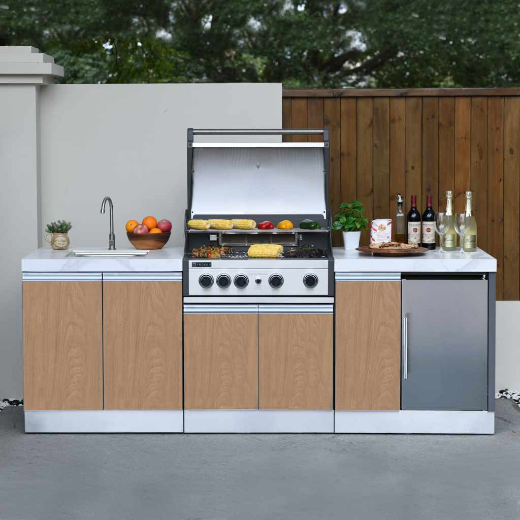 Prokan Bespoke 5B Modular Outdoor Kitchen in Wood Pattern Panels