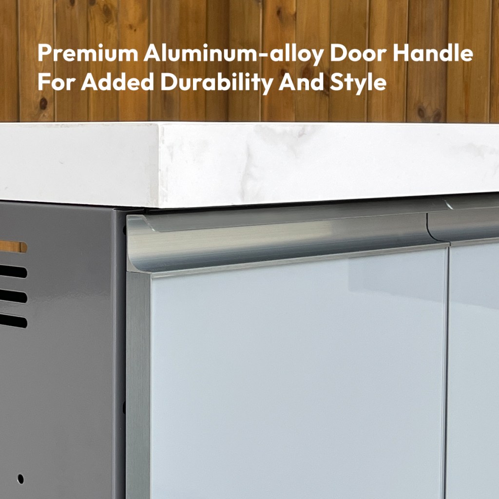 Get grilling, and maximize your backyard storage space, with Side Cabinet with Gray Glass Panels Outdoor Kitchen cabinets with weather resistant construction. Introducing Prokan Bespoke 5 Burners Modular Outdoor– where design meets functionality, and the boundaries between indoor and outdoor living blur in perfect harmony.