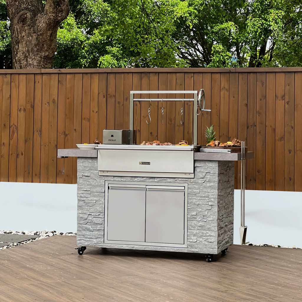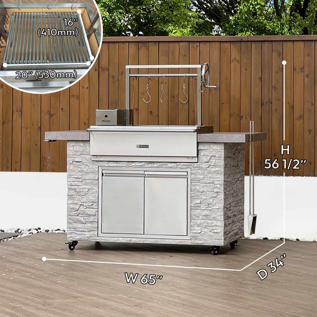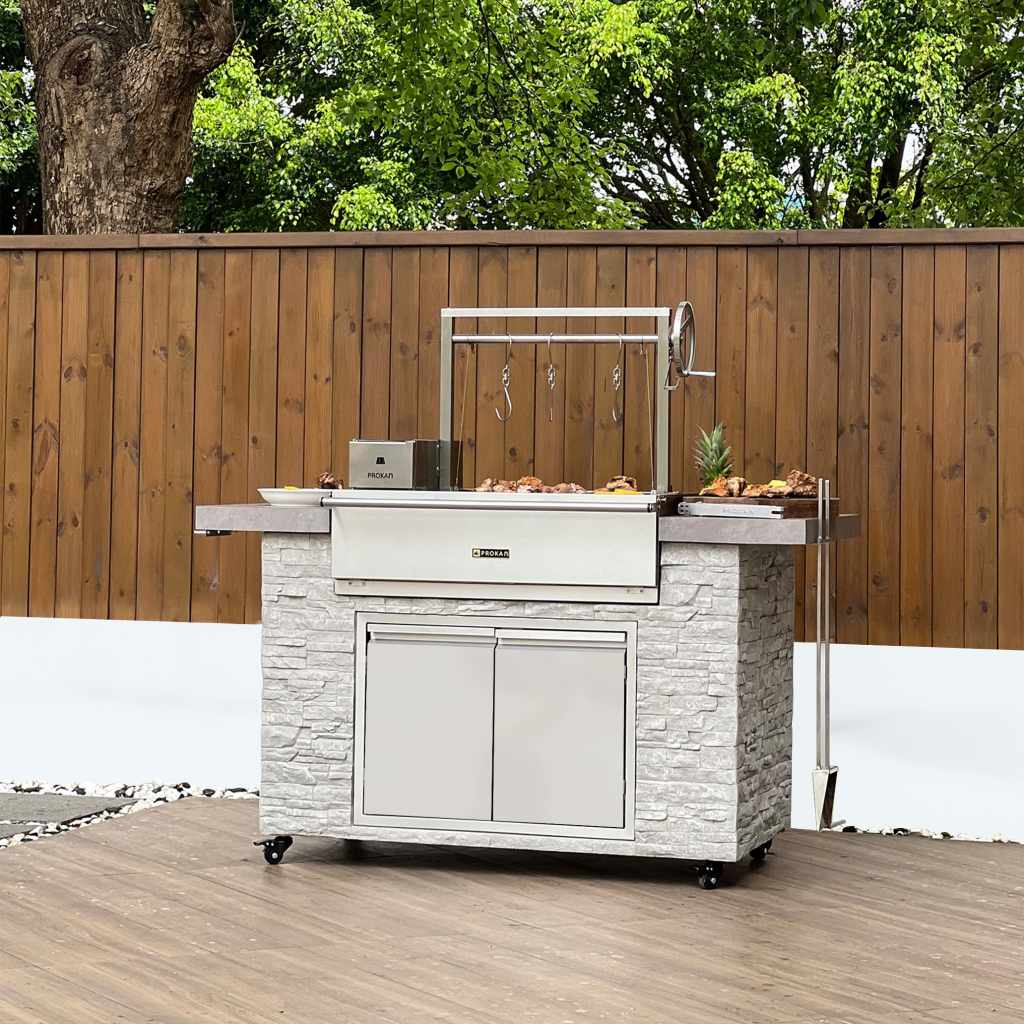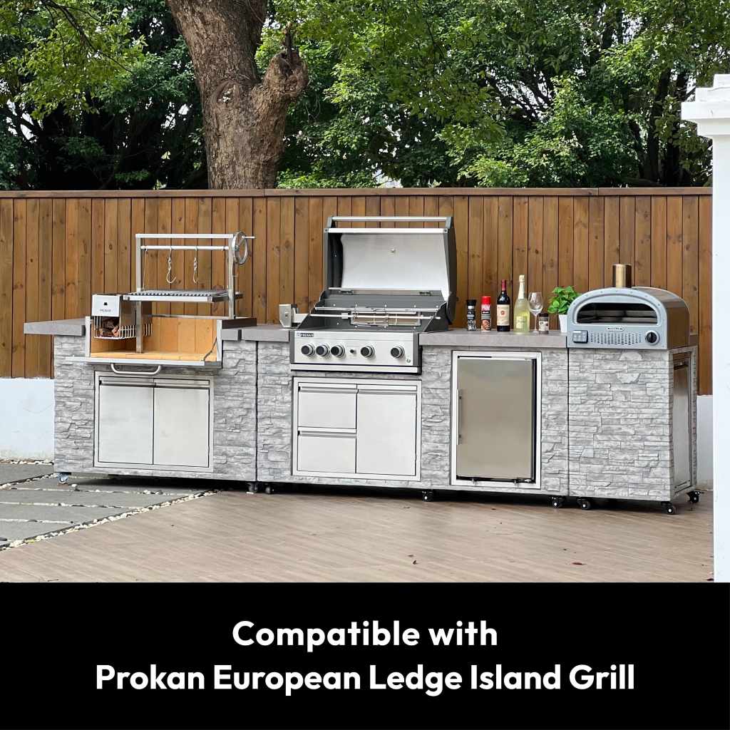 .Designed for modularity, this grill includes a smaller countertop for seamless integration with a Prokan European ledge island grill. Create a custom outdoor kitchen.