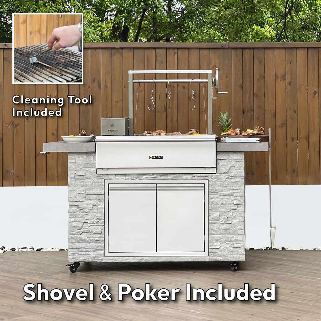 .Experience genuine Argentine Asado with the built-in SS304 brasero. Easily create embers for smoky flavor and precise temperature control, defining authentic live-fire grilling.